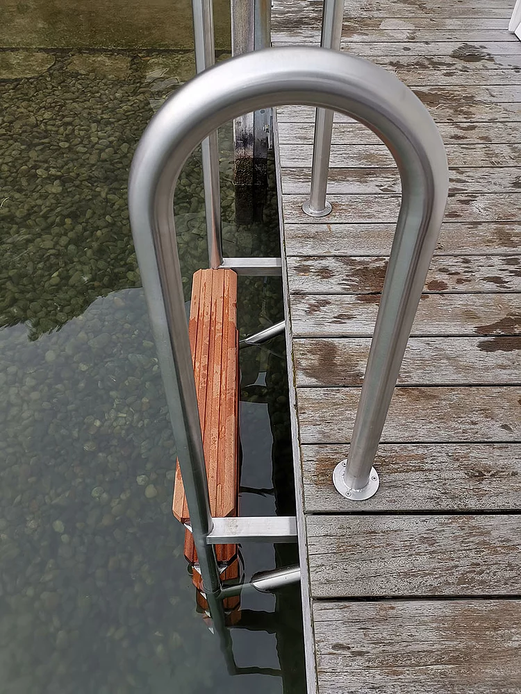 Für den bequemen Einstieg ins Wasser bieten wir verschiedene Badeleitern an. Die Badeleitern können individuell nach Kundenwunsch gefertigt werden.