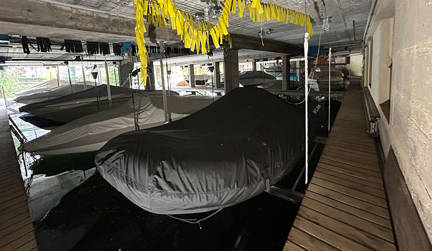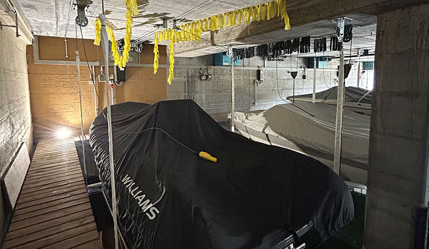 Die Anlage ist als Deckenbefestigung mit einem Unterwasserjoch-System ausgeführt. Dieses System sorgt für eine gleichmässige Kraftverteilung und ein sicheres Anheben des Bootes auch bei hoher Belastung. Eine robuste, präzise und langlebige Lösung, die die bestehende Halleninfrastruktur auf den aktuellen Stand der Technik bringt.